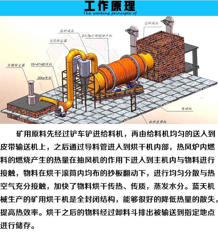 礦用烘干機(jī)( 礦用烘干設(shè)備)廣泛用于建材,冶金、選礦、化工、水泥等行業(yè),主要用于礦渣、石灰石、粘土、河沙、石英沙、水渣等濕性大、比重大的的物料。礦渣烘干生產(chǎn)線,主要由回轉(zhuǎn)筒體、引風(fēng)設(shè)備、高速打散設(shè)備、揚(yáng)料板,自清掃裝置、傳動(dòng)裝置,輸送設(shè)備、熱風(fēng)設(shè)備、減速機(jī)、支撐裝置及密封裝置等部件組成。