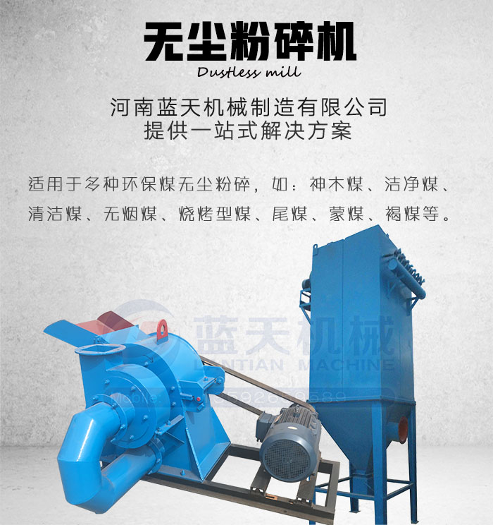 河南藍(lán)天機(jī)械制造有限公司生產(chǎn)的無(wú)塵粉碎機(jī)專(zhuān)業(yè)針對(duì)潔凈型煤、清潔型煤、無(wú)煙木炭、炭粉的粉碎處理,是新型環(huán)保無(wú)塵粉碎機(jī)設(shè)備,公司提供一站式解決方案,滿(mǎn)足用戶(hù)需求的同時(shí)不斷提升環(huán)保無(wú)塵粉碎機(jī)技術(shù),專(zhuān)業(yè)無(wú)塵粉碎機(jī)廠家請(qǐng)認(rèn)準(zhǔn)“藍(lán)天”!