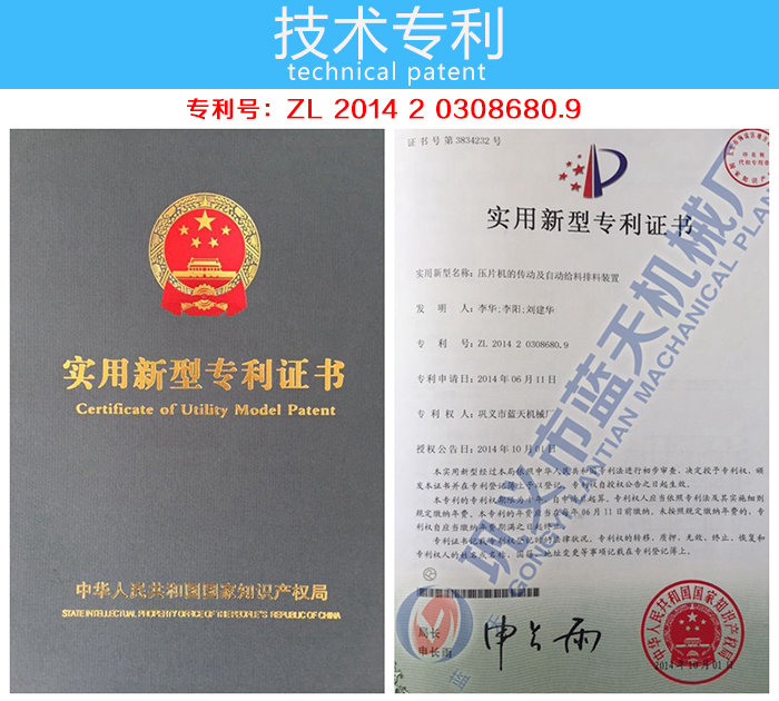 液壓壓片機(jī)改變模具后可以將物料壓制成片狀(Ф15-Ф80mm)圓形、方塊、長方體、三角型、圓柱體、菱型、錐體、凸面、凹面和其他各種幾何形狀的產(chǎn)品,還可壓制帶有文字、商標(biāo)、圖案、雙層雙色片及各種異形。每分鐘沖壓三十次,每次可出43片,每小時沖壓八萬片左右。本設(shè)備壓力可大可小,密實(shí)度可以調(diào)節(jié),沖壓穩(wěn)定,成品率高,性能優(yōu)良。